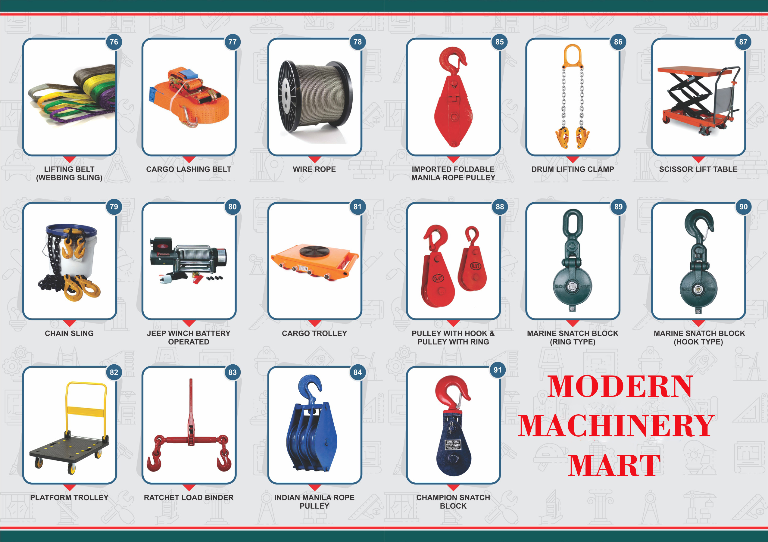 Lifting Products | Fire & Safety Products | Cutting Tools & Hand Tools | Welding Rods & Accessories | Plasma Spares | Measuring Instruments | Hardware & Civil Items | Electrical & Paints & General Order Suppliers